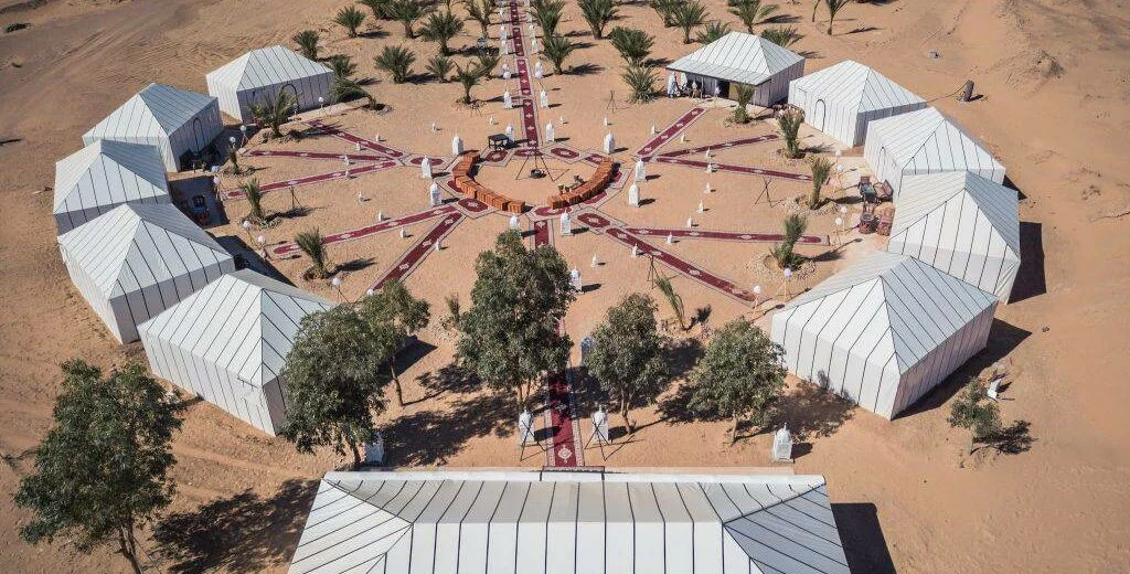 Tours include one night in a luxury camp in Merzouga, offering 40 m² suite tents equipped with :